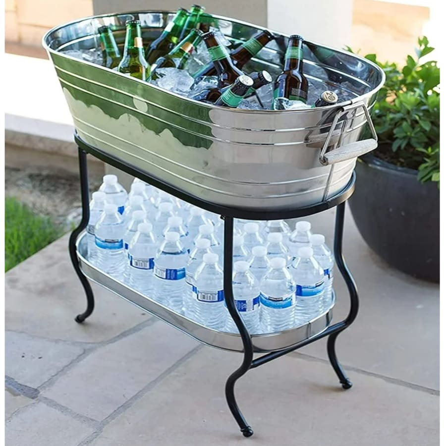 This stylish and spacious beverage tub is the perfect drink station for any celebration. With a generous capacity, it can hold up to 35 bottled sodas, beers, or waters, or up to 19 wine/champagne bottles—making it ideal for any occasion.