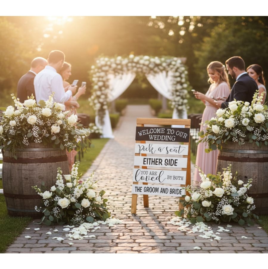 “Welcome to Our Wedding – Pick a Seat, Either Side, You Are Loved by Both the Groom and Bride.”
