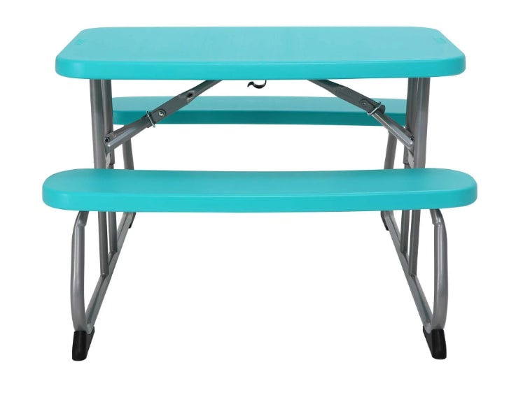 This colorful, kid-sized picnic table is perfect for outdoor or indoor celebrations Setup and cleanup are a breeze, while the cheerful aqua color adds a playful touch to any party setup.