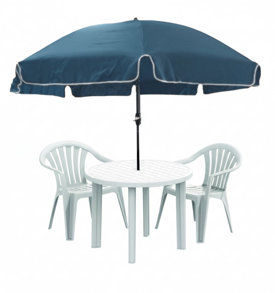 Our Blue Patio Umbrella with a sturdy base, perfect for providing shade at outdoor events. Stylish and functional, it’s an ideal addition to any gathering.