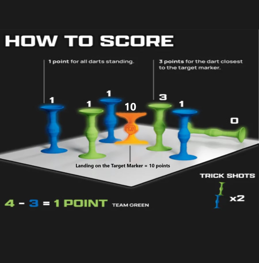 Bring the competition and the POP to your next event with the Pop Darts PRO Pack! This exciting game is perfect for kids, teens, and adults alike. Featuring the signature Wigglenobber target marker, players take turns throwing suction cup darts that stick with a satisfying pop on smooth surfaces.