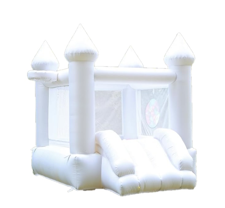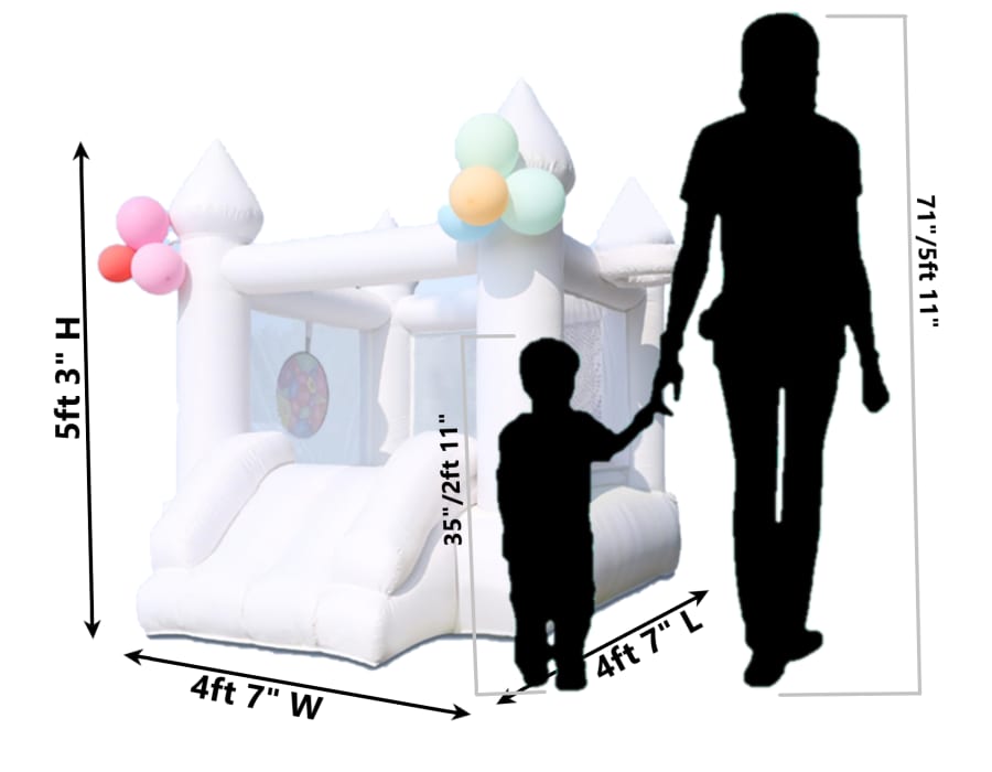 This indoor mini white bounce house is designed for hours of safe and exciting fun! perfect for children/toddlers. Suitable for 2 Children/Toddlers under 6 years old. With a maximum weight limit of 90 lbs per child, it's an ideal play space for little ones to bounce, slide, and shoot hoops.