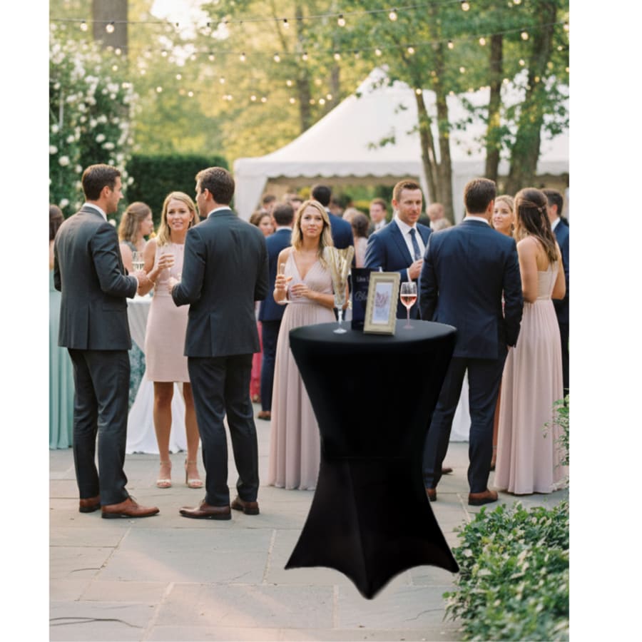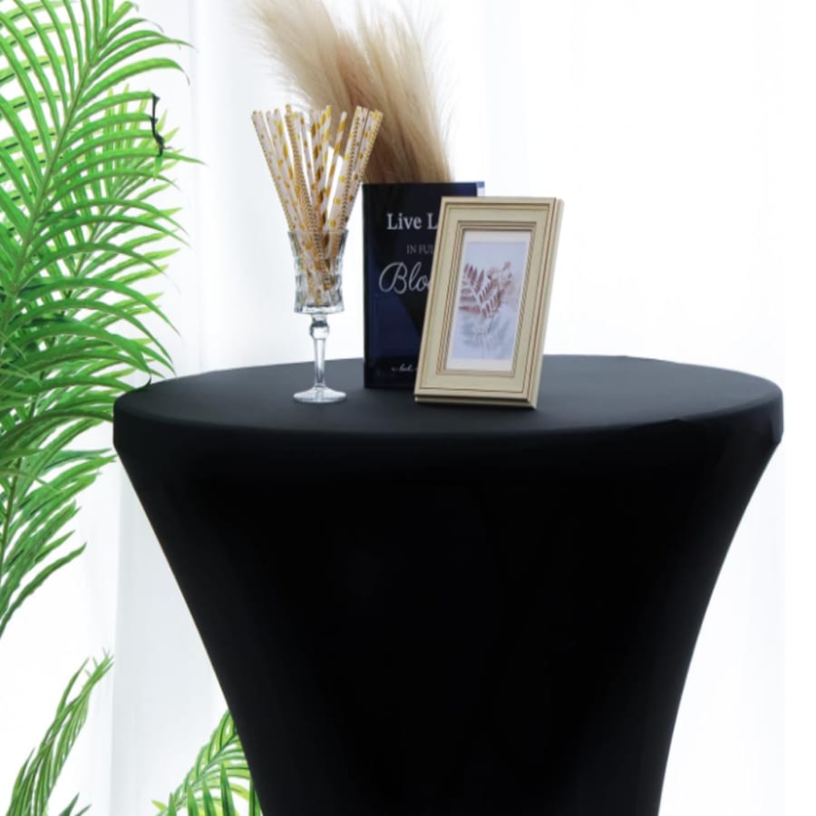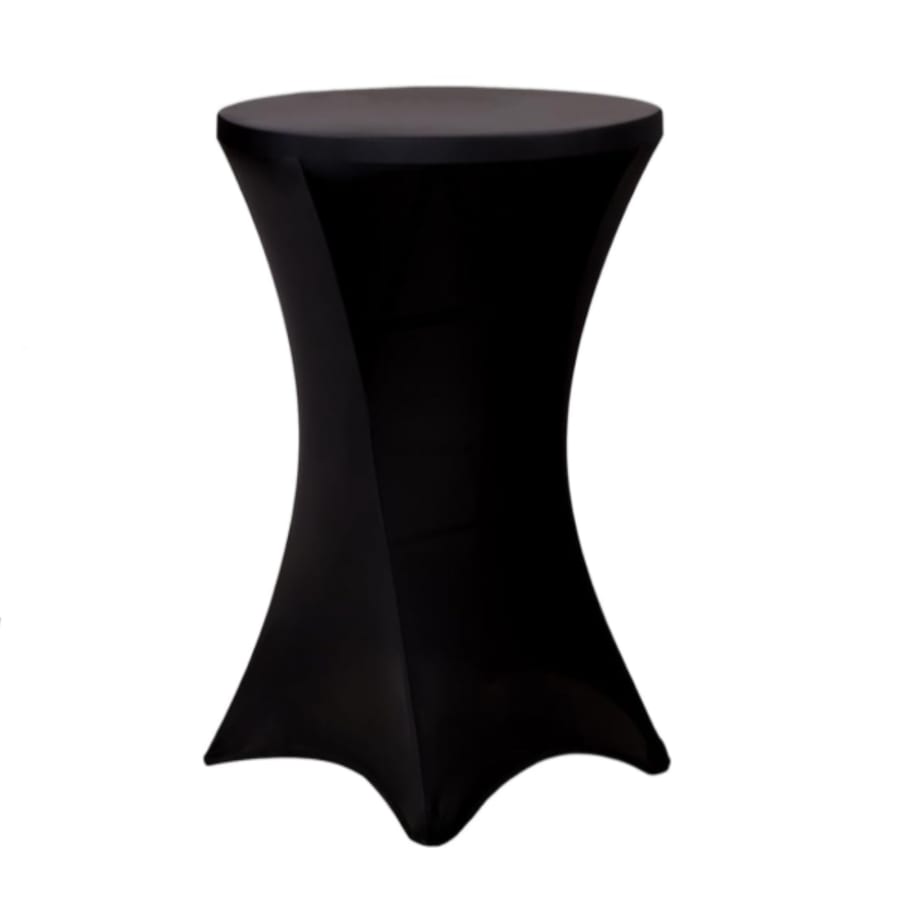 Rental Includes: One black premium fitted spandex cocktail tablecloth