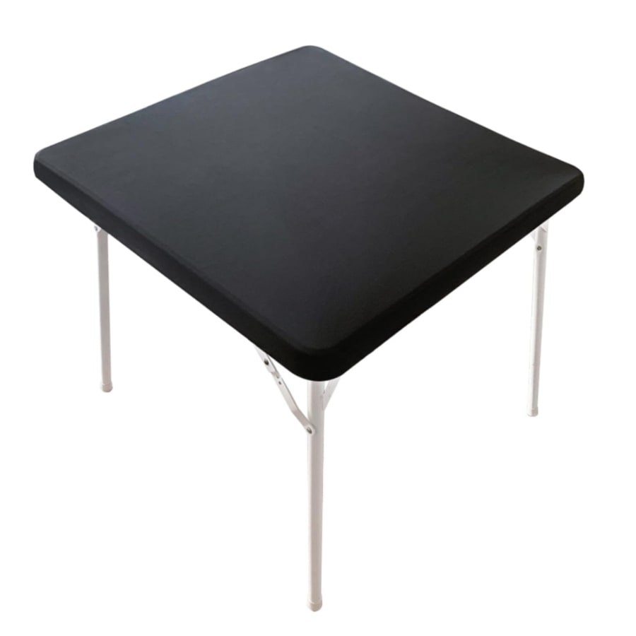 Add a clean, modern touch to your event setup with our 34” x 34” black spandex square table cover. Designed with elastic edges for a secure, fitted look, this stretchy table topper stays smooth and wrinkle-resistant throughout your event.