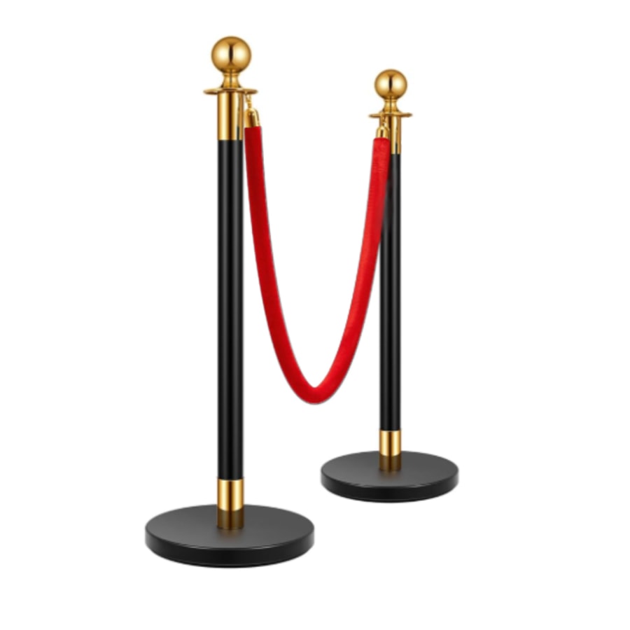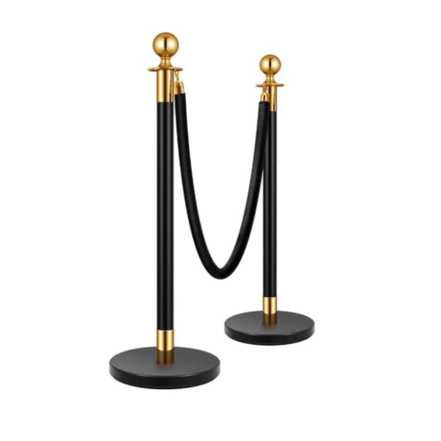 Add a touch of elegance and crowd control to your event with our stainless-steel stanchion posts. This rental includes 2 durable, polished metal black and gold poles and one luxurious black velvet rope—perfect for VIP entrances, red carpet walkways, or line management. Need a longer setup? Additional stanchion posts and ropes are available to rent separately for extended coverage.