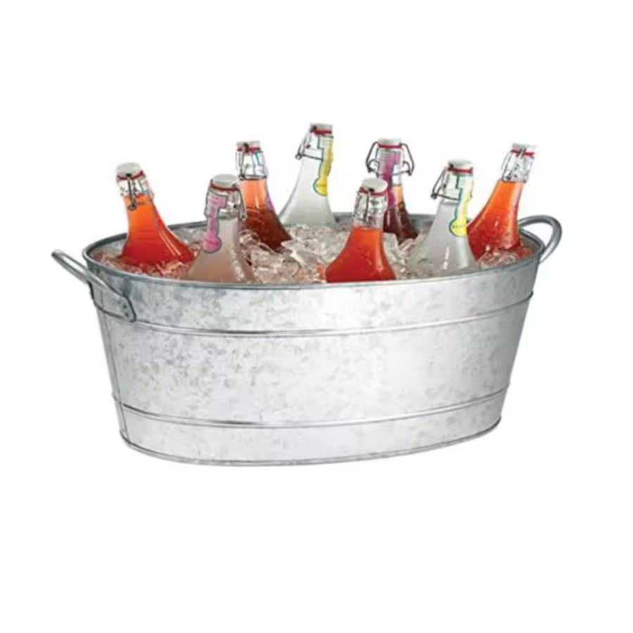 Keep your beverages chilled and ready to serve, with this sturdy tabletop galvanized steel drink tub adds a rustic touch to any event. Holds ice and multiple bottles or cans.