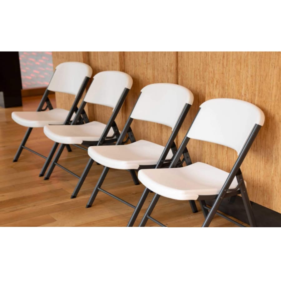 Our Commercial Grade White Folding Chairs are a clean, classic seating solution for any event. Built from high-quality plastic with a reinforced metal frame, these chairs are both durable, comfortable and Lightweight yet strong, they’re easy to set up and stack for quick takedown. Their sleek white finish complements any décor or theme.