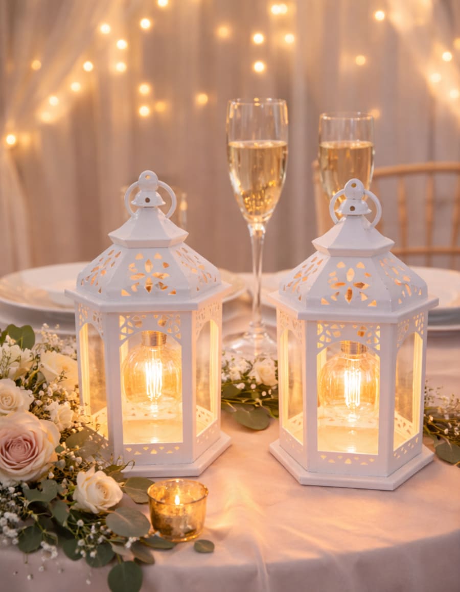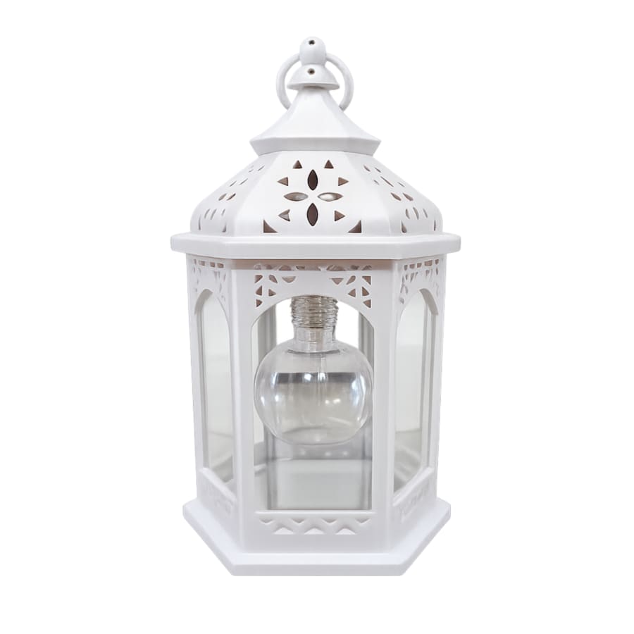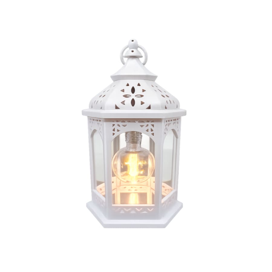 Add a warm and elegant glow to your event with this small white LED lantern. Featuring a clean white finish and a soft LED bulb glow, this decorative lantern creates a cozy, romantic atmosphere without the worry of open flames.
