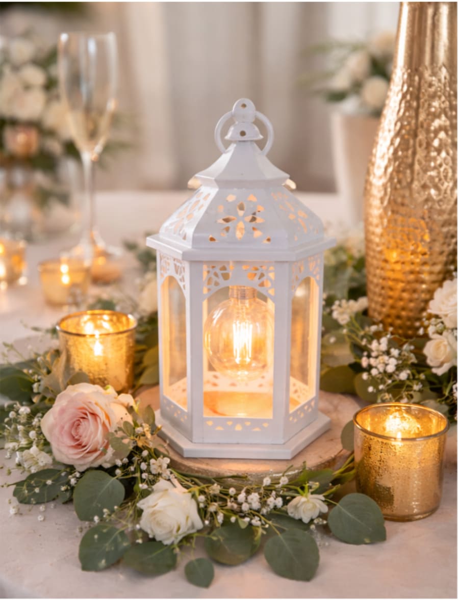 This versatile lantern pairs beautifully with candles, florals, and rustic or modern themes. Lightweight and easy to place.