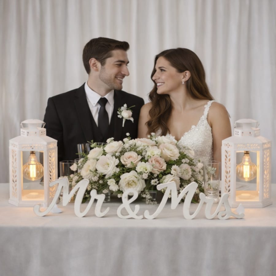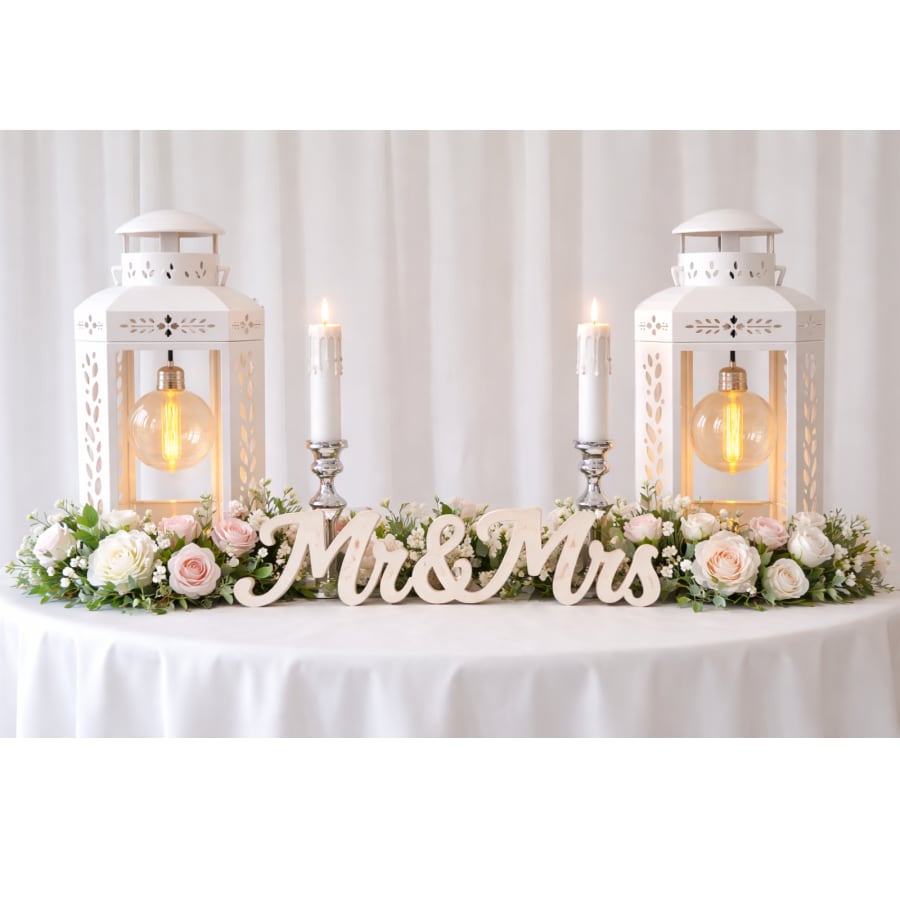 Setup & Teardown: Not included – This item is delivered ready to use. Customer Pickup: Not available – delivery required Rental Includes: 3-piece Mr. & Mrs. wooden letter set Complete your table décor with our Sweetheart Table Bundle (includes lanterns, candles, and a Mr. & Mrs. sign). Click Here