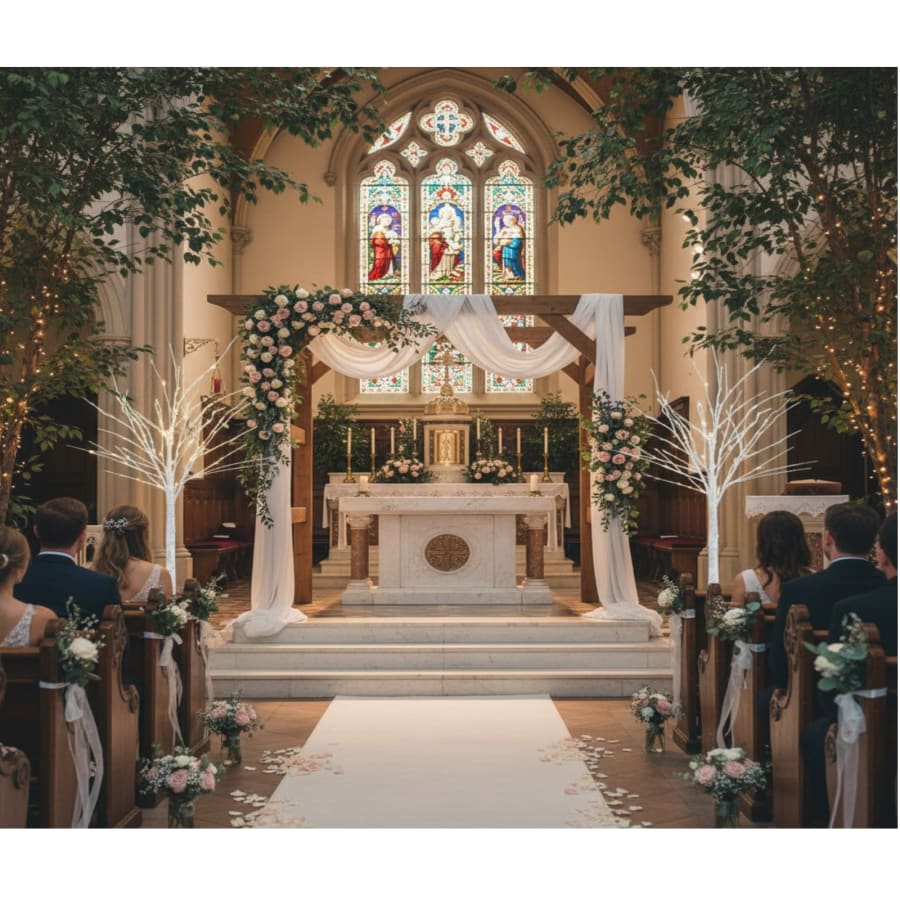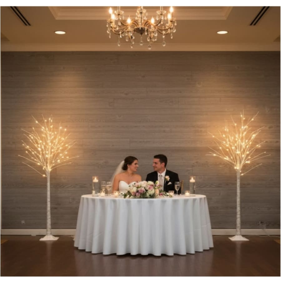 This stunning tree features realistic branches with soft white LED lights, creating a magical and inviting atmosphere. This light-up tree adds a sophisticated touch to any gathering.
