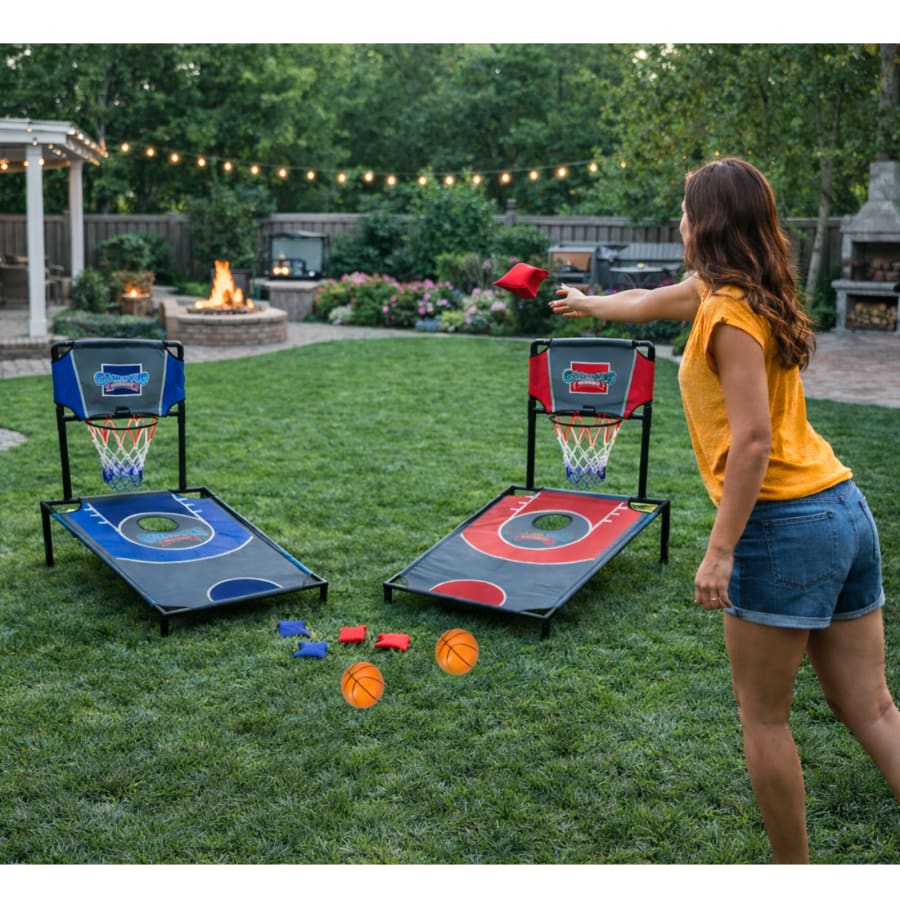 Experience the thrill of basketball with the classic fun of cornhole in our Cornhole Shootout set! Perfect for enthusiasts, athletes, and anyone looking for a competitive and entertaining activity