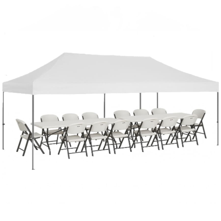 1- 10x20 Pop Up Canopy 3 - 6ft Tables 24 - Chairs 2- Yard Games (your choice)