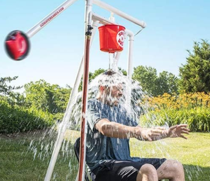 • Players take turns throwing softballs/beanbags at the target to release the dunk seat/splash.